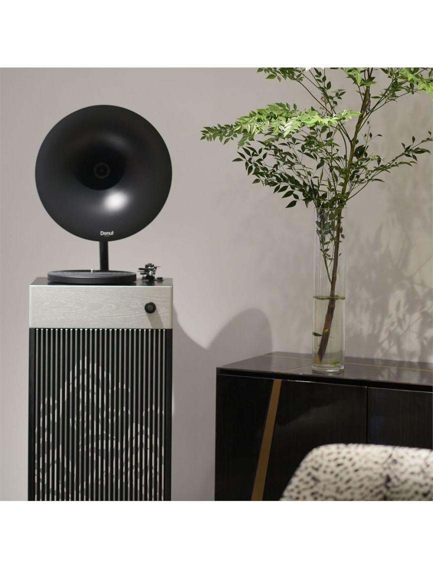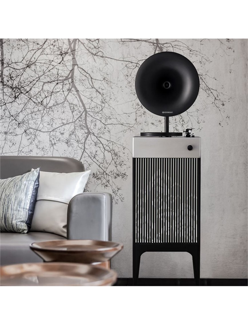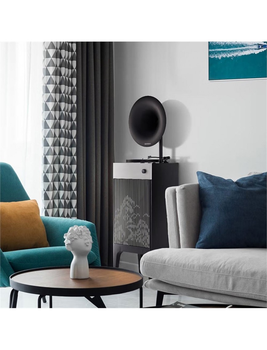 gramofonlarda yer alan büyük hoparlörlerinin modern bir yorumu olarak