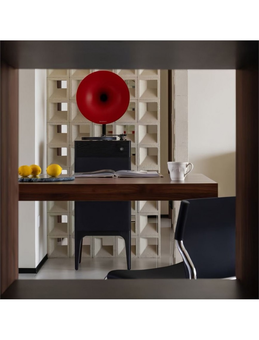 gramofonlarda yer alan büyük hoparlörlerinin modern bir yorumu olarak