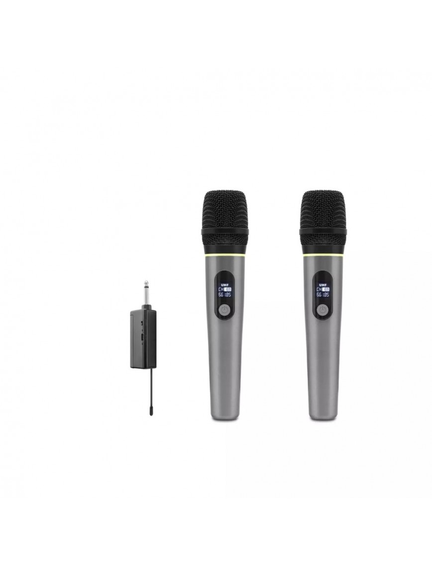 Set içerisinde iki adet elde mikrofon ve 6.5 mm jaklı kablosuz alıcı bulunmaktadır.