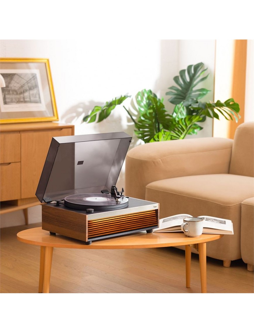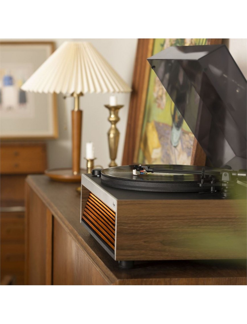 HYM Originals Lumi Pikap, analog müzik dinlemenin keyfini doruklarda yaşamak isteyenler için tasarlanmıştır. Doğal ceviz ağacı kaplamasıyla hem klasik hem modern dekorasyonlara kusursuz uyum sağlayan bu pikap ile evinizde sıcak ve nostaljik bir atmosfer oluşturabilirsiniz.